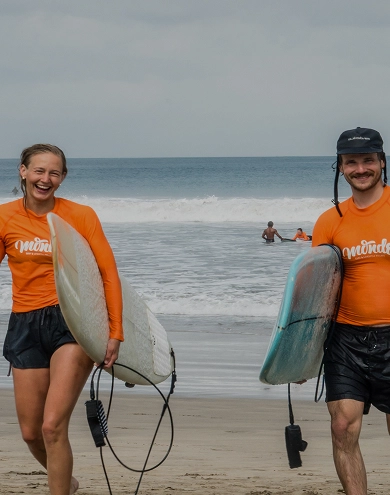 Each surf lesson includes two surf sessions with a relaxation break. Sometimes, a single longer session is held depending on wave conditions. Surf Instructors make all surf decisions and inform everyone of the departure time the day before.