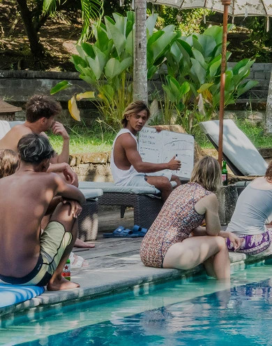 Relax after surfing, then enjoy a second Yoga session from 5:00 PM to 6:00 PM. Throughout the week, Surfing theory and Video analysis sessions are held on Wednesdays and Saturdays around the pool and bar. Intermediate surfers may have a different schedule based on ocean conditions.
